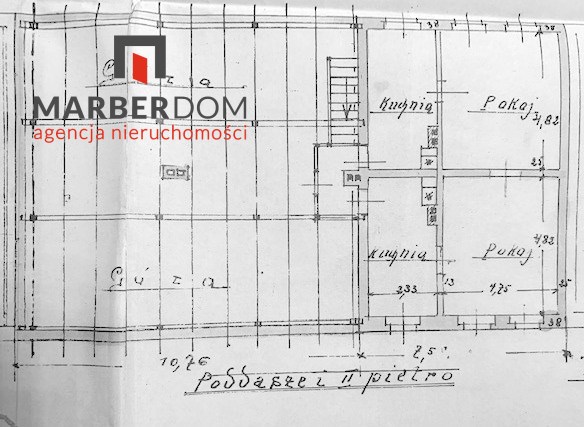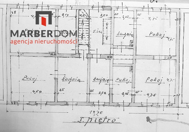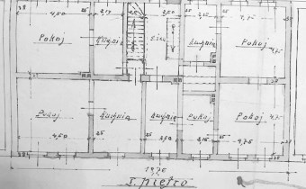 Powierzchnia użytkowa: przypuszczalnie około 265m2 (parter 125m2, I piętro 140m2).