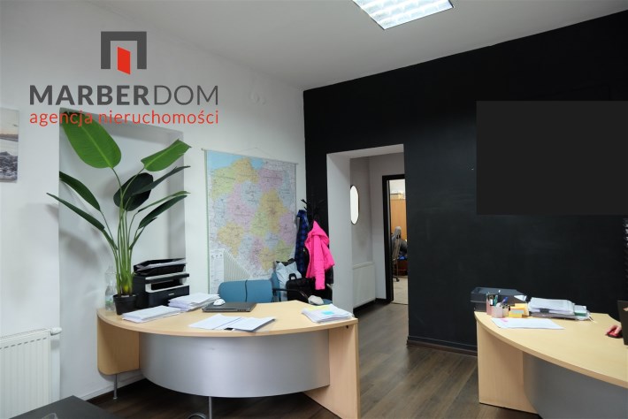 Pomieszczenia: sala główna, pom. biurowe, WC, zaplecze.