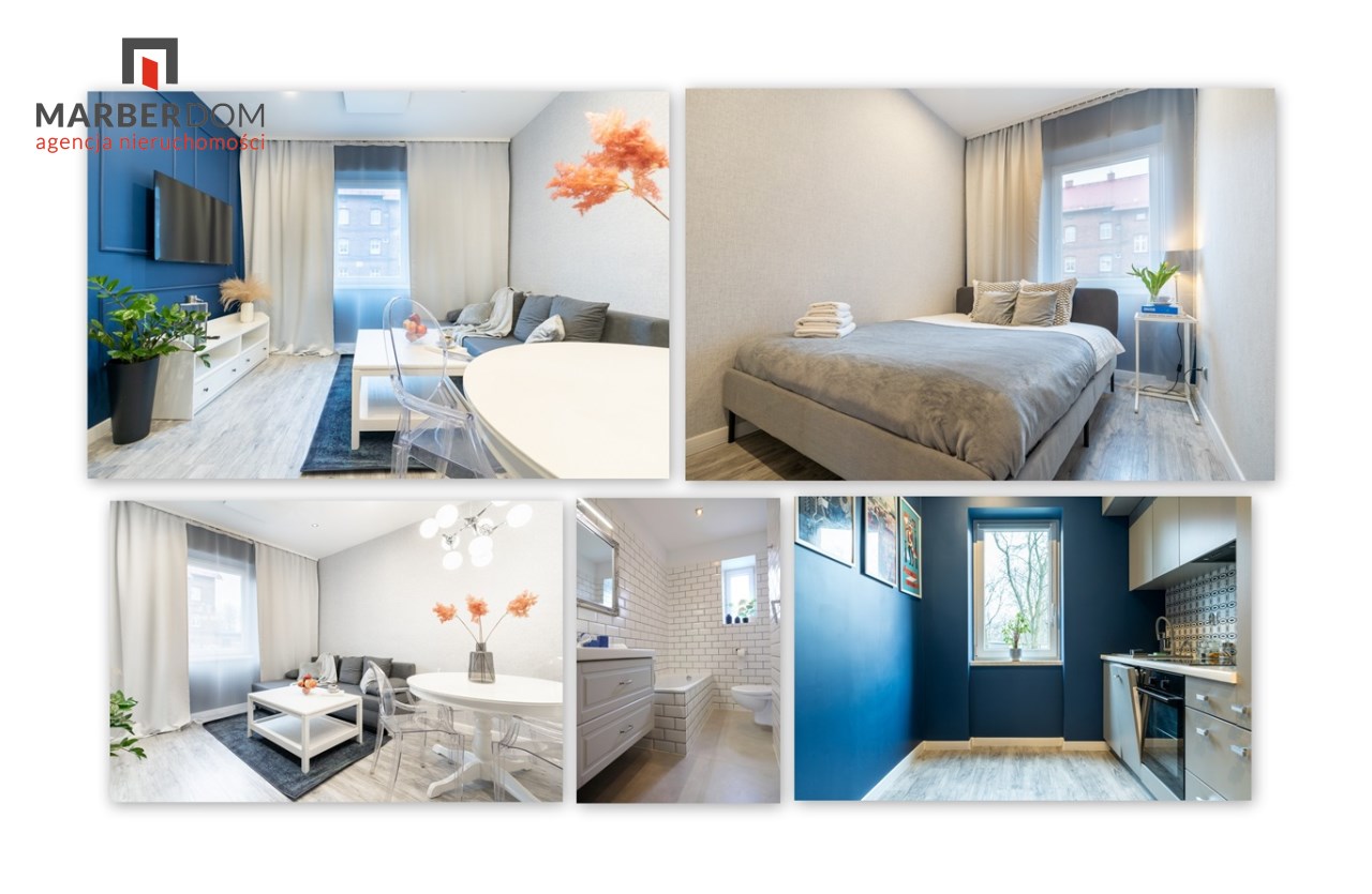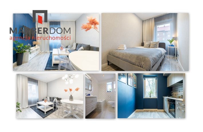 Pomieszczenia: sypialnia, salon, kuchnia, łazienka, przedpokój.