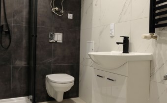 Wyposażenie łazienki kabina prysznicowa, umywalka, WC