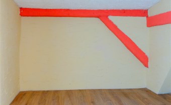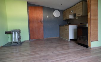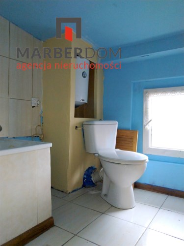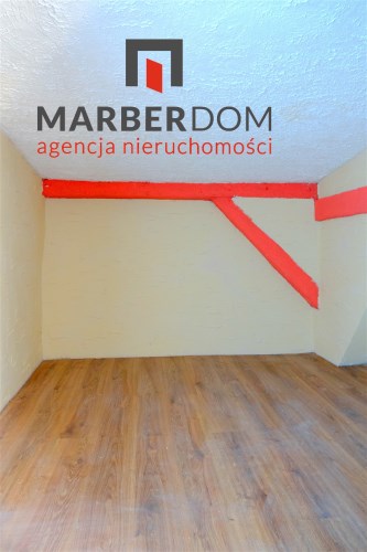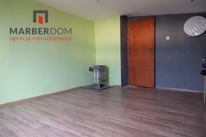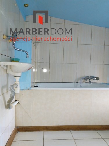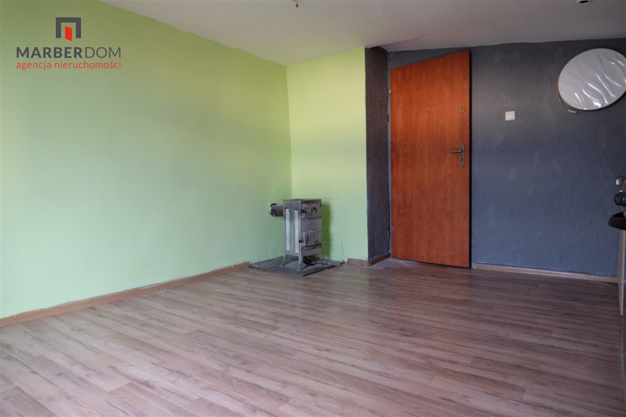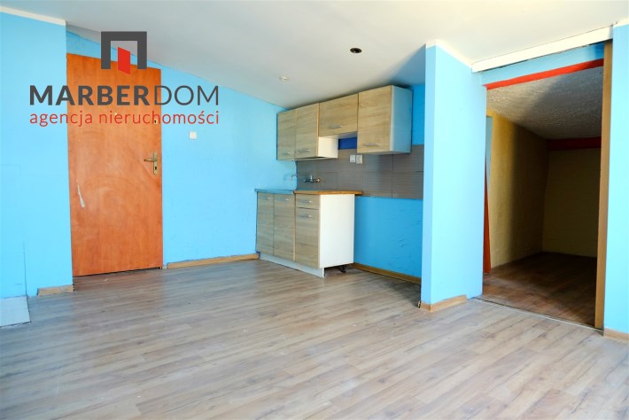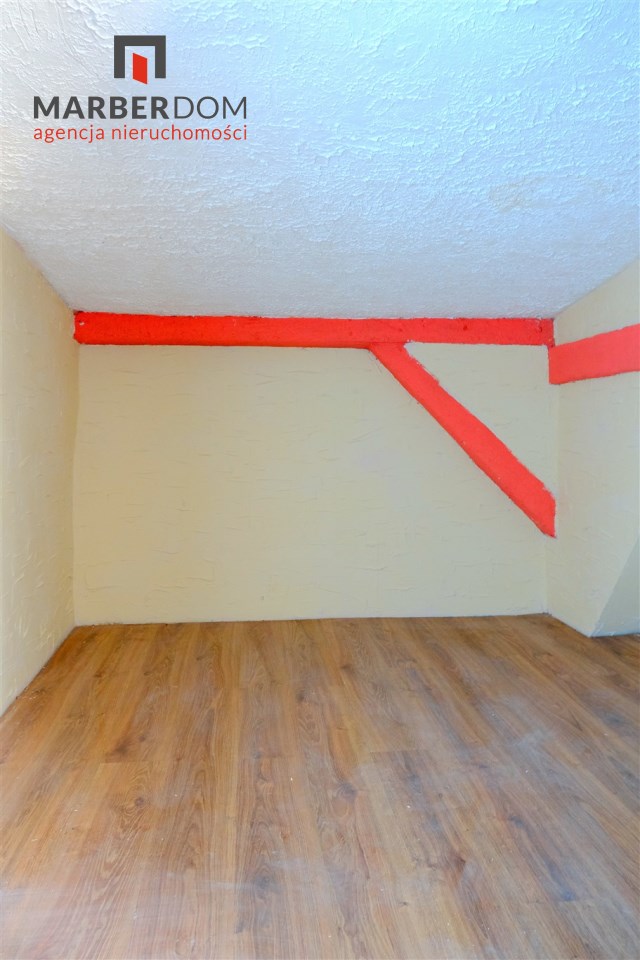Pomieszczenia: pokój z kuchnią, łazienka (niska, skosy), przedpokój.