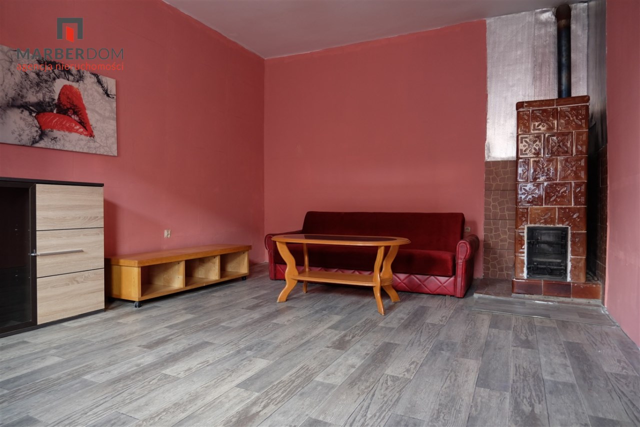 Wyposażenie: meble kuchenne, piec węglowy, kanapa, fotel, lodówka, pralka, kuchenka mikrofalowa.